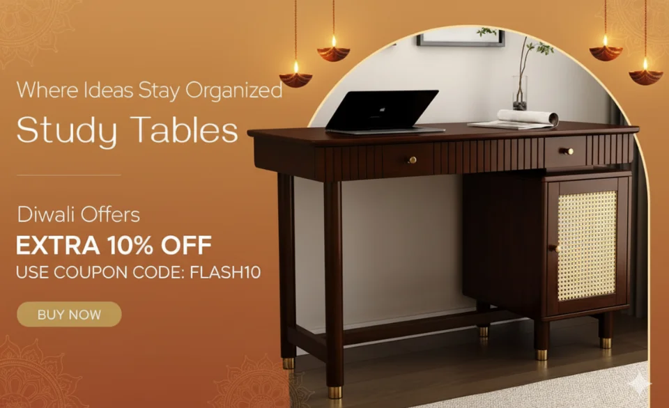 - Study Tables: Boost your productivity with our strong and stylish study tables. Our sturdy and stylish study tables are ideal for home & offices, plus it offer ample space for all your work essentials helping you stay organized and focused.